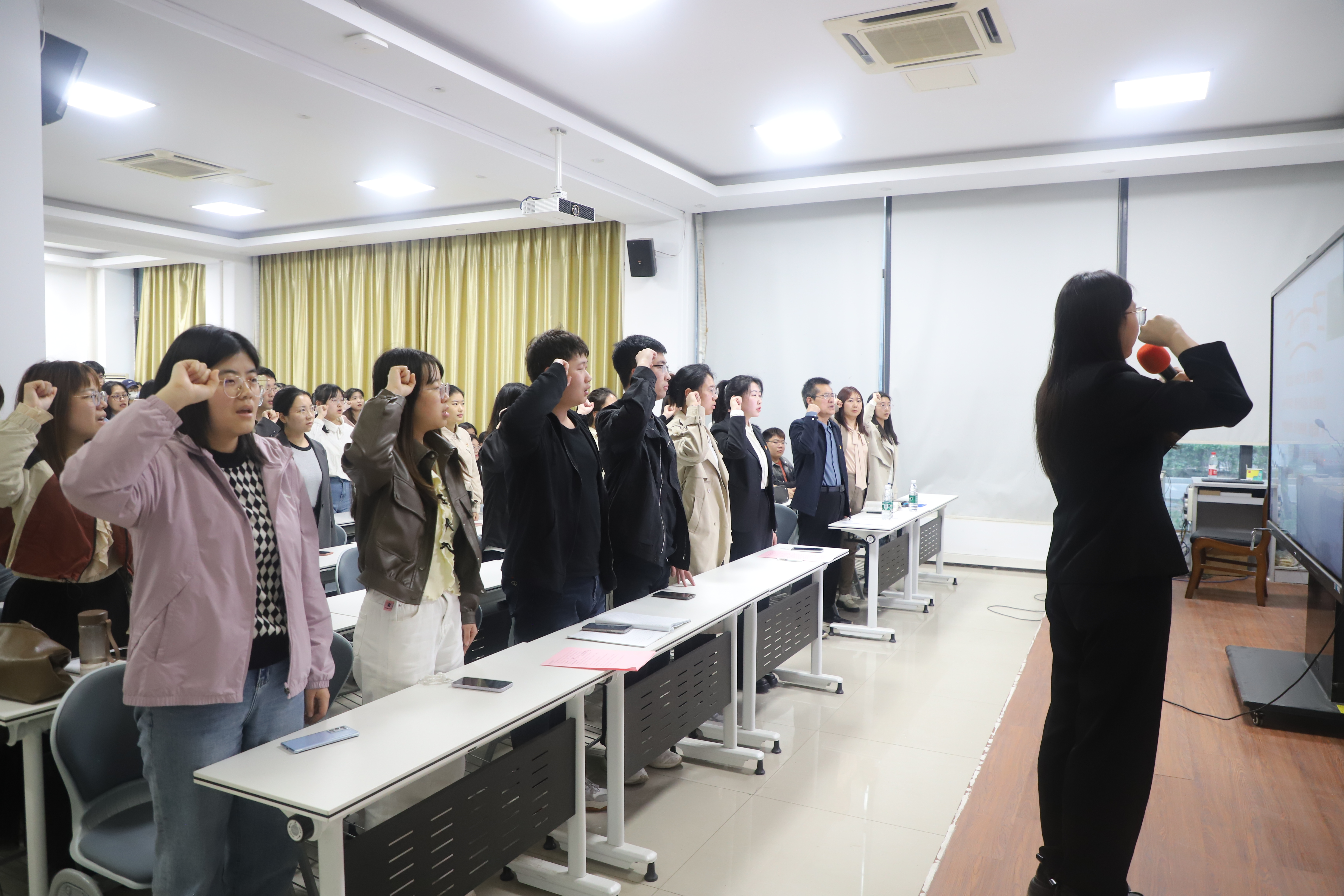 最后,学生党员代表孙梦做表态发言,全体党员面对党旗重温了入党誓词。